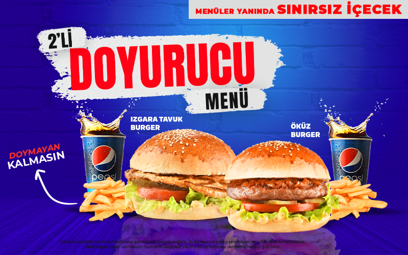 Lezzetin Yeni İsmi: Öküz Burger Menü! Özel hazırlanan köftemiz, karamelize soğanla buluşuyor ve tadı damağınızda kalacak bir deneyim...
