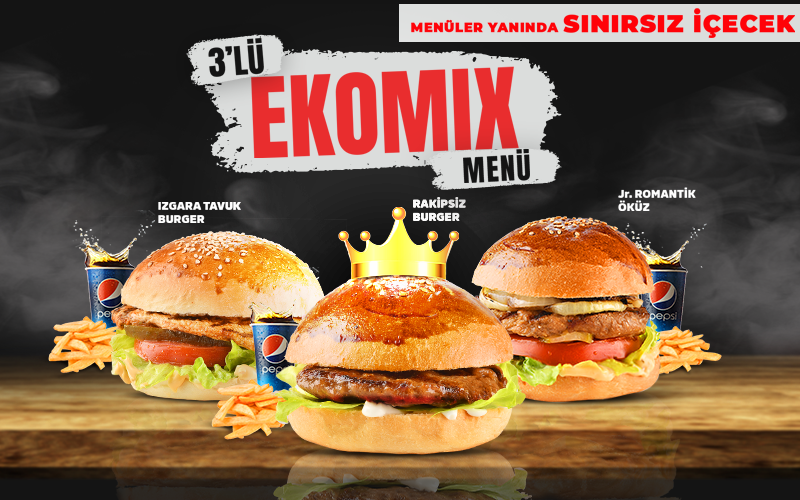 Mexican Burger Menü! Özel Mexican dip sosu ve çıtır sebzelerle zenginleştirilmiş öküz burger köftesi, dilim dilim kaşar peyniriyle...